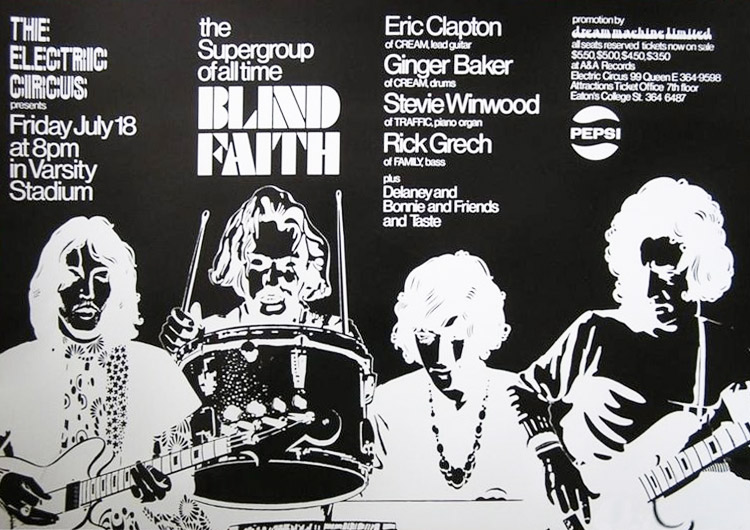 Above is the very rare poster for the July 18 1969 Toronto show of the super group Blind Faith