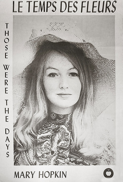 Promo Poster (Capitol / Apple Canada) September 1968 for the new Apple 45 Mary Hopkin - Le Temps des Fleurs / Turn Turn Turn (Apple 2) (Source: Jamie Anstey, for more details, see the news entry for Octobre 2012 in the Archive section)