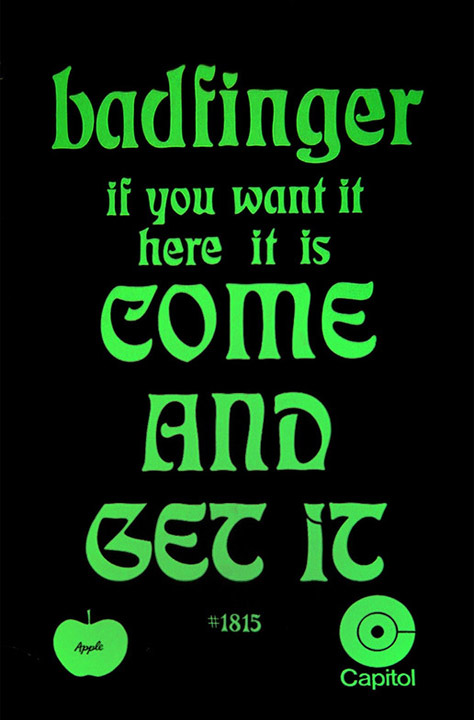 Promo Poster (Capitol / Apple Canada) December 1969 for the new Apple 45 Badfinger - Come And Get It / Rock Of All Ages (Apple 1815)