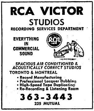 Graham recalls that in the 1960s, it was common for RCA to receive regular release pressings from Capitol USA or EMI in the UK, for use as source material for Canadian 45 releases. Capitol mostly used the services of RCA Toronto to cut the lacquer masters for their Canadian releases. The studios were located in those days, at 225 Mutual Street in downtown Toronto, south of Carlton, just west of Jarvis St.